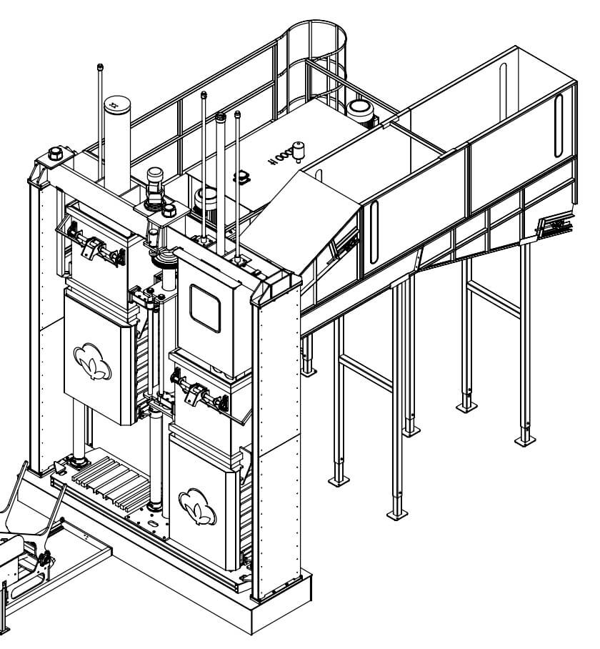 The Vertical Bale Press is designed to compress solid waste and fabrics, saving shipping and storage space.